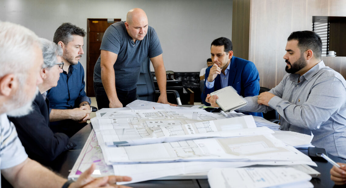 O prefeito de Cuiabá, Abilio Brunini, recebeu representantes da Associação Mato-Grossense dos Municípios (AMM) para discutir o projeto arquitetônico de uma Instituição de Longa Permanência para Idosos (ILPI). A reunião ocorreu no gabinete do prefeito e contou com a presença do coordenador de engenharia da associação, Jeferson Almeida, além do procurador Luiz Júnior, da secretária adjunta de Projetos Sociais, Hélida e do secretário de Habitação e Regularização Fundiária, Willian Campos.