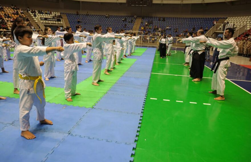 Fotos: Michel Alvim O Corpo de Bombeiros Militar de Mato Grosso (CBMMT) lançou oficialmente o projeto social Karabom na região metropolitana de Cuiabá, na noite desta sexta-feira (21), no Ginásio Aecim Tocantins. O projeto promove aulas de karatê-do tradicional para crianças e adolescentes com vulnerabilidade social. “Nossa expectativa é expandir o Karabom para todo o